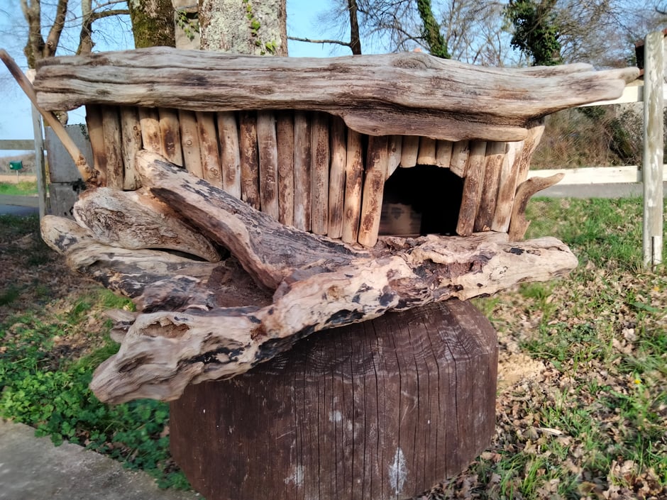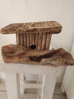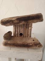 Réalisés en bois flotté de l océan , sans colle ni solvants , mes nichoirs garniront votre jardin ou vos balcons.